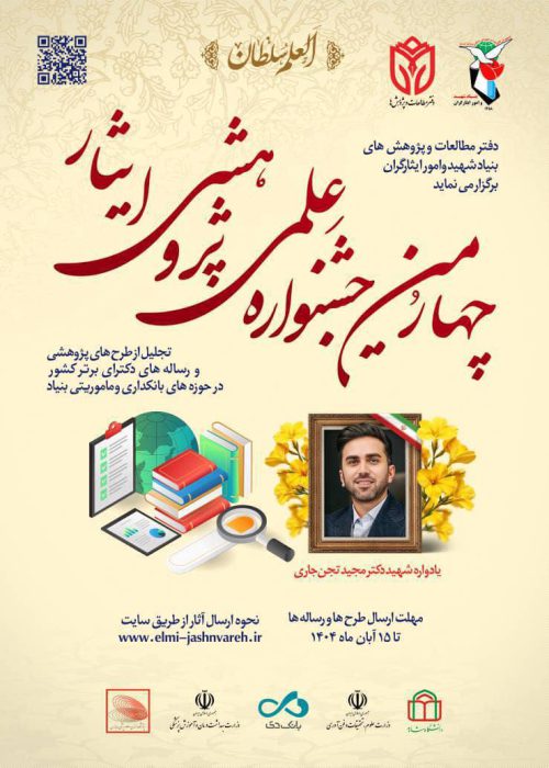 چهارمین جشنواره علمی، پژوهشی ایثار س, 07/08/1404 - 09:16 | isarurmia چهارمین جشنواره علمی، پژوهشی ایثار اطلاعیهستاد دانشجویان شاهد و ایثارگر